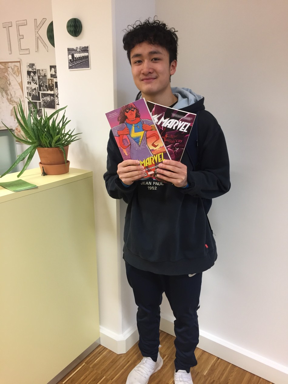Dan er en av elevene som låner tegneserier i skolebiblioteket. Ms. Marvel er en av de mest populære seriene for øyeblikket.