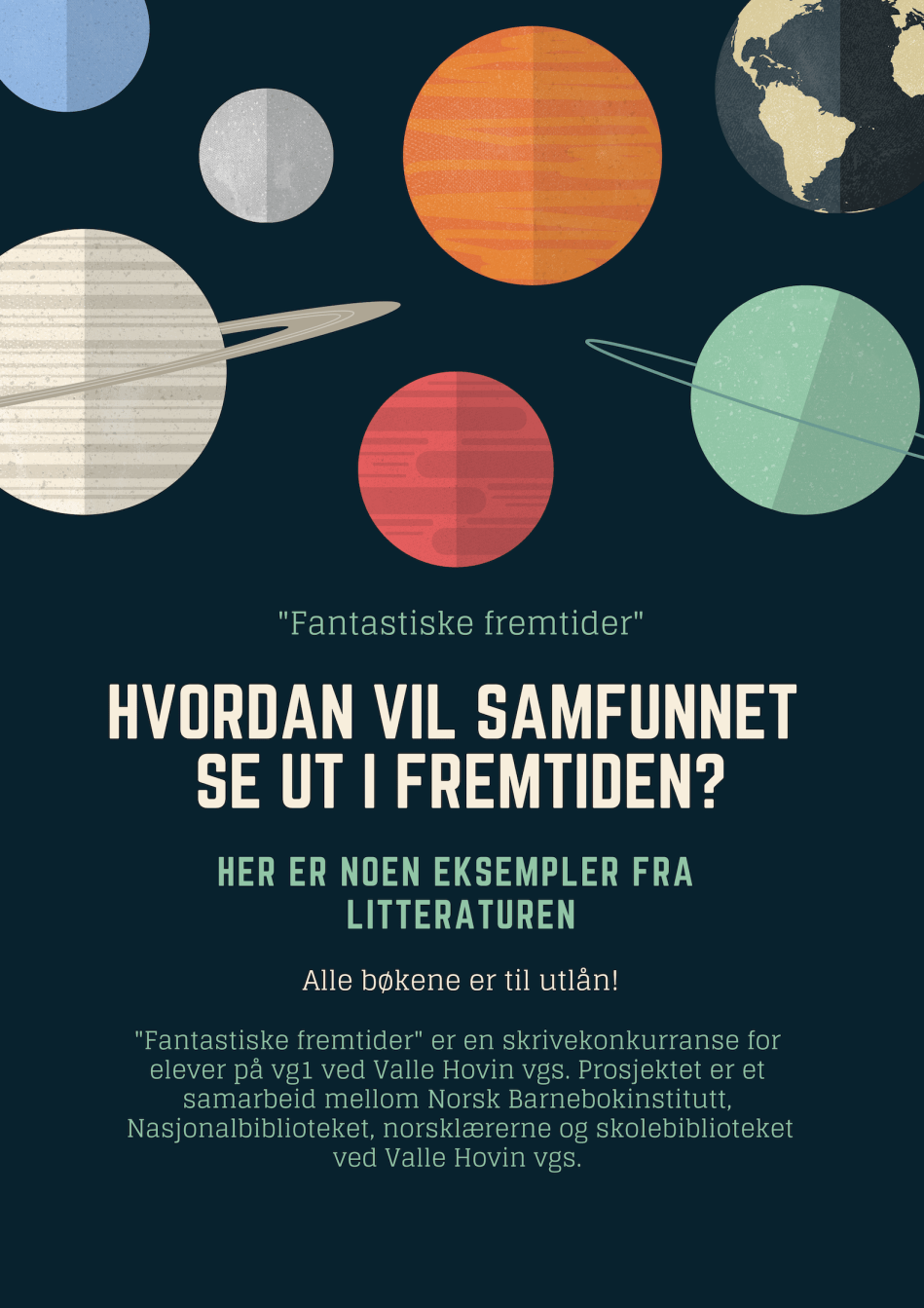 Alle vg1-elevene ved Valle Hovin vgs er inviterte til å delta i en intern skrivekonkurranse på trinnet, i regi av Norsk Barnebokinstitutt og Nasjonalbiblioteket. Prosjektet er en del av Nasjonalbibliotekets satsing Fantastiske fremtider. Skrivekonkurransen er en integrert del av norskundervisningen og et samarbeid mellom norsklærerne, skolebiblioteket, Norsk barnebokinstitutt (NBI) og Nasjonalbiblioteket. Tema for skrivekonkurransen er hvordan Oslo kommer til å se ut i 2060. Alle elevene skal skrive en tekst som vurderes av norsklærerne. Det kåres to vinnere i hver av de seks klassene. Disse 12 elevene får tilbud om å delta på et skrivekurs over tre dager i januar. I begynnelsen av februar inviteres resten av skolens elever og ansatte, foreldre og andre interesserte til et åpent arrangement i Nasjonalbibliotekets store auditorium. Der vil elevene lese tekster som de har skrevet i løpet av kursperioden og de får møte forfattere som selv skriver fremtidslitteratur.