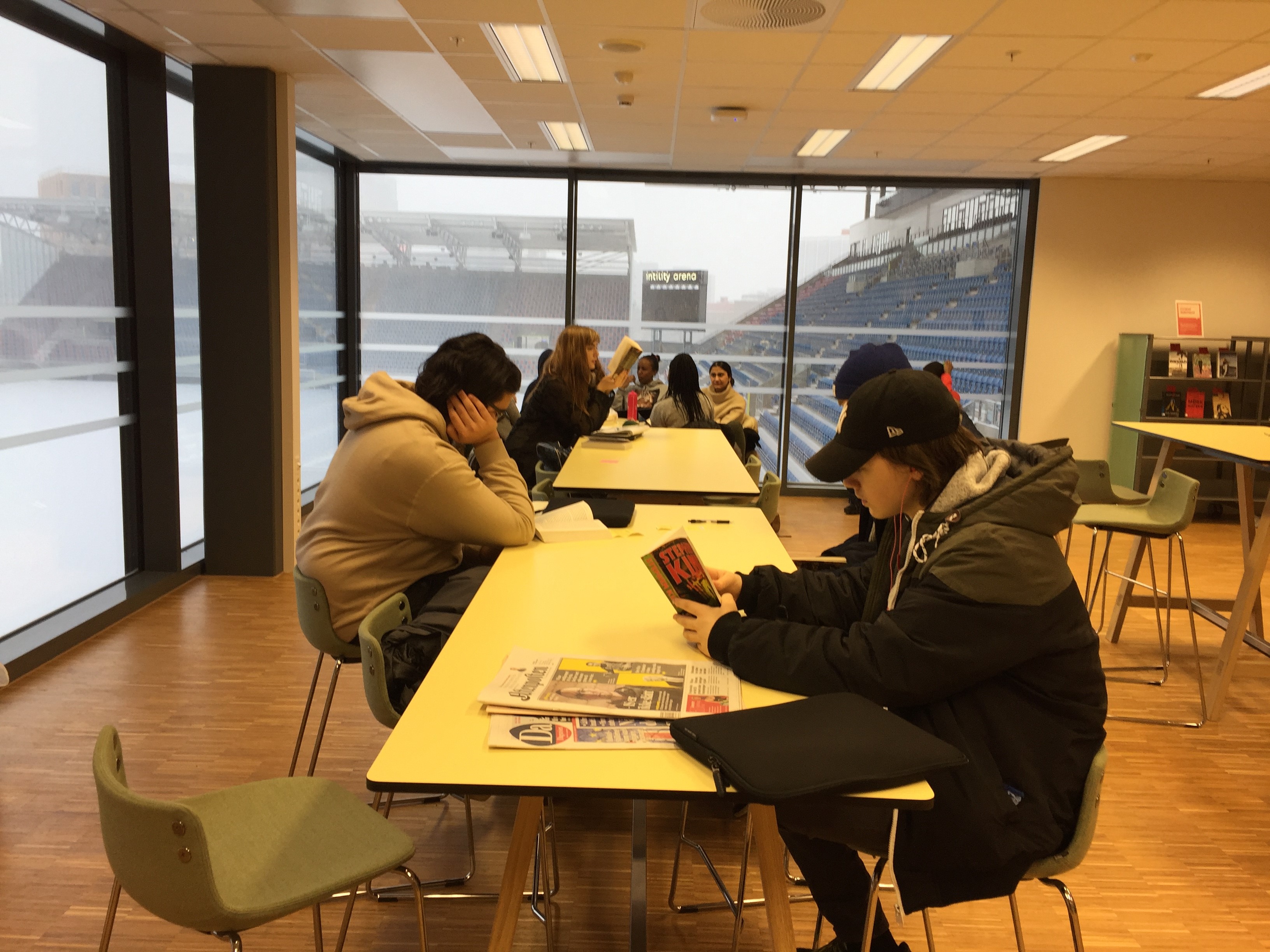 Én gang i uka har klassen lagt siste time av undervisningsøkta til skolebiblioteket hvor jeg har presentert én ny bok for dem hver gang. Jeg har forsøkt å vise fram bredden i samlingen, både sakprosa og skjønnlitteratur, og knytte det opp til faget Internasjonal engelsk.