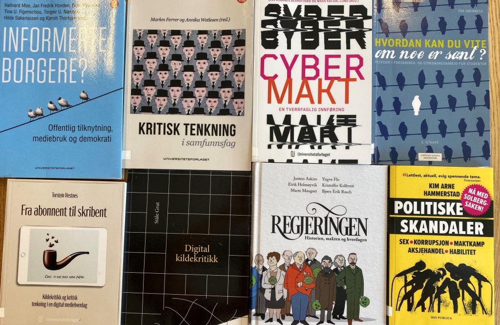 På Elvebakken ønsker vi å gi alle elevene våre lik grunnleggende opplæring i kildebruk. Hver høst holder vi i skolebiblioteket derfor kildekurs i samfunnskunnskap. I år omfattet det 18 klasser som kom innom biblioteket i løpet av tre uker. Kurset utvikles og forandres fra år til år. Mens jeg tidligere har snakket mye om falske nyheter, kunstig intelligens og digital kildekritikk, snakket jeg i år mest om lesing og viktigheten av å lese samfunnsfaglig litteratur – både sakprosa og faglitteratur – for å tilegne seg kunnskap. Min erfaring er at mange elever tror at all faglitteratur er lett tilgjengelig på internett, og at de glemmer å lete i den trykte faglitteraturen på hylla i skolebiblioteket. Derfor er det viktig at vi viser dem veien til alle de gode bøkene i samlingen vår.