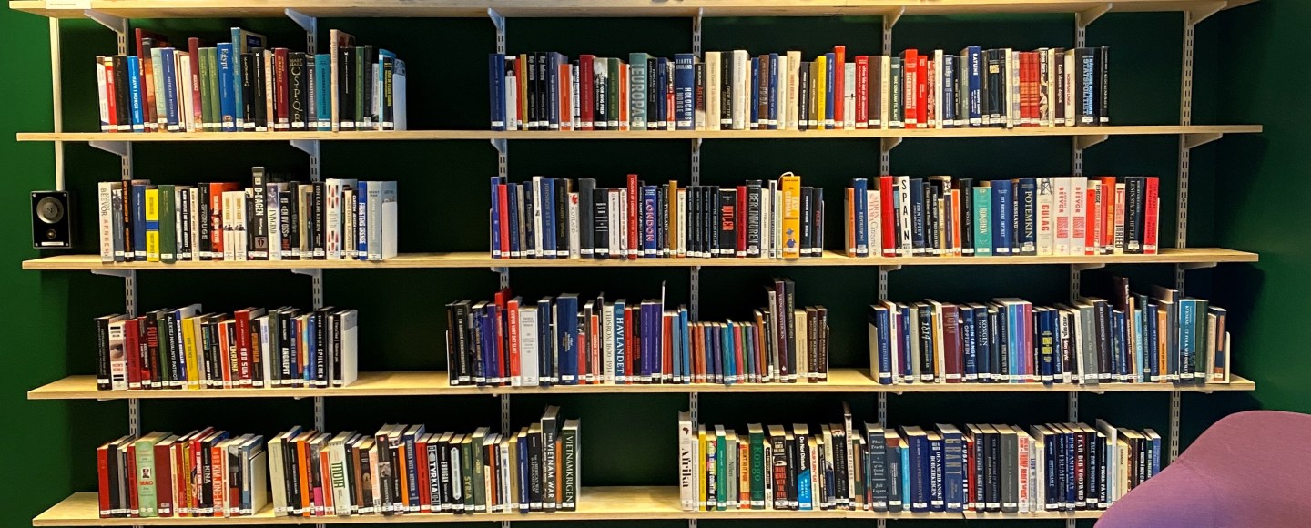 Neste punkt på agendaen er å få til bedre skilting av samlingen. Vi forsøker å få hjelp av noen flinke elever og lærere som kan designe skilt, slik at hylleplasseringen kommer tydeligere fram. Forandring fryder – særlig når det innebærer bokhyller i alle rom!