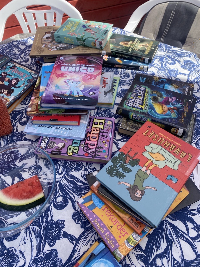 Noen av barna som var innom på besøk, har gått innom biblioteket etterpå for å låne en bok de hadde fått anbefalt av meg eller jentene. Jeg håper det kan være en spire til leselyst utover høsten, at de kan være stolte over at de har vært med i en leseklubb i sommerferien og at de forteller andre elever om hvor mange bøker de har lest.
