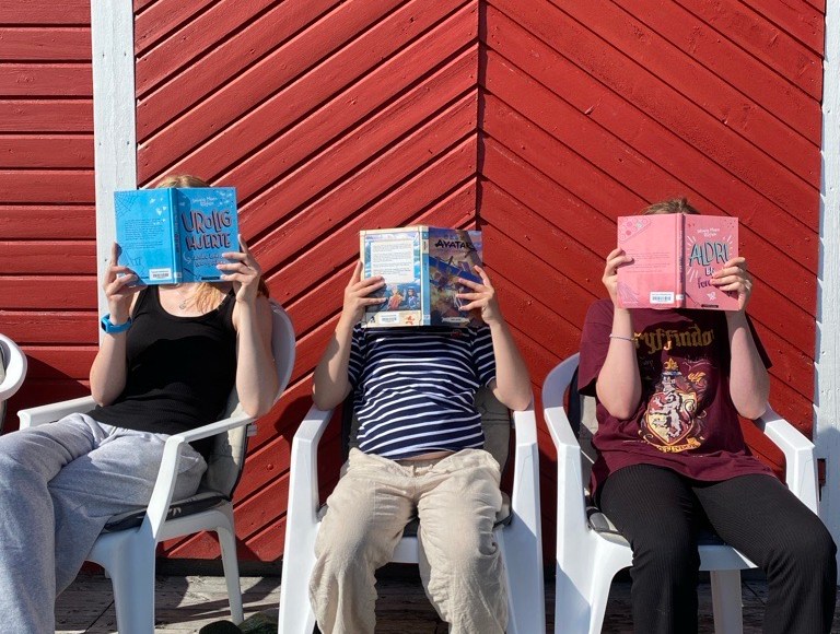 I sommer har jeg på en måte tatt med meg jobben på ferie gjennom å sørge for å spre leseglede til både barn og voksne. Det hele begynte med at datteren min på ti år var godt i gang med leselyst-aksjonen Sommerles fra 1. juni. Sommerles drives av folkebibliotekene rundt om i landet og oppmuntrer barn til å lese bøker gjennom sommermånedene, å registrere alt de leser og å vinne små premier og digitale anerkjennelser. Jeg syntes det var fint at hun var godt i gang med lesingen, men jeg var redd for at interessen skulle dabbe av når hun ble distrahert av andre aktiviteter. For å sørge for å holde leselysten ved like, foreslo jeg at vi kunne lage en leseklubb i ferien, sammen med venninnene hennes. Det syntes hun var en strålende idé, og vi dro til det lokale folkebiblioteket for å låne bøker. Der plukket vi med oss bøker i forskjellige sjangre, om ulike tema, og med varierende vanskelighetsgrad. Deretter inviterte vi nabojentene til leseklubb i naustet til svigerfar, og oppfordret dem til å finne seg en bok de hadde lyst til å lese. Den ene av venninnene dro litt på det og innrømmet at hun ikke var noe glad i å lese bøker, men med litt veiledning til å finne den første boka, og oppmuntring fra de to andre, kom hun i gang.